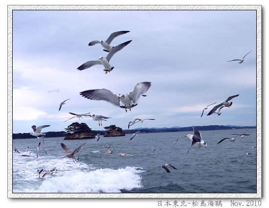 當天的松島灣天空陰霾濕冷,港灣內的海鷗爭相搶食遊客拋出的蝦味鮮,又急又兇啊!