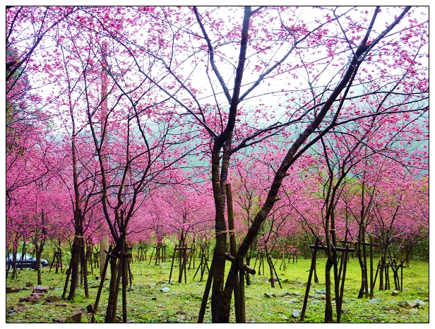 Feeling來報馬說大同玉蘭茶園的櫻花開了,想起去年春天去明池,經過玉蘭茶園,櫻花開得正燦爛的景象,於是相約今日一早賞花去!