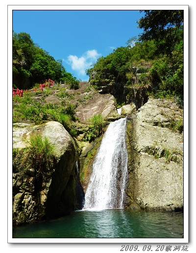 每週走一步道,本週去「五峰旗瀑布」,位於礁溪老爺飯店旁,是宜蘭很著名的風景區之ㄧ,因瀑布後方有五座山峰並列,好像國劇武將背後的五支三角旗,因此得名為「五峰旗」。約莫在二十幾年前跟James前任公司來爬過。