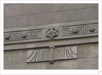 在建築形式方面,並不完全採用當時流行的巴洛克式建築風格,而是融合了埃及(古埃及柱廊)、馬雅文化(獅頭雕飾)、日本(福神及蓮華花飾帶)...,多變又具有濃厚的異國風味,可說是非常罕見且極具創意風格!即使是現今日本本地,也很難找到這麼饒富趣味而有特色的建築形式。
