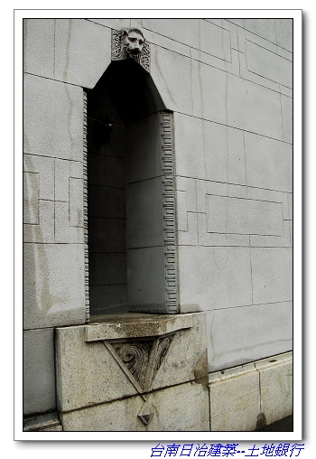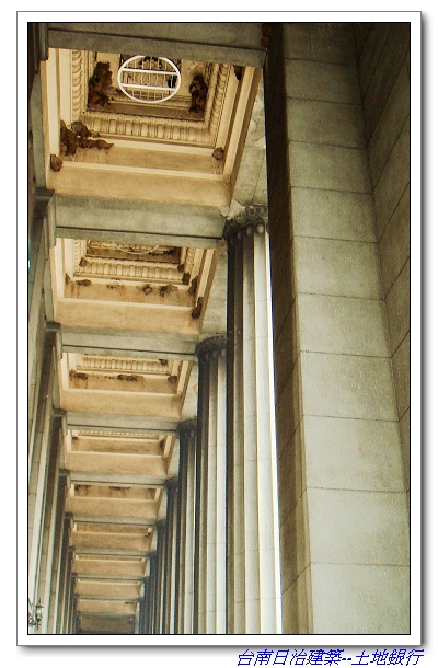 埃及神廟柱廊形式,外觀穩重厚實,成排的廊柱,非常引人注目,這種厚重有份量的建築形式,似乎顯示了當初殖民政府對台灣金融產業壓倒性控制的權威性。